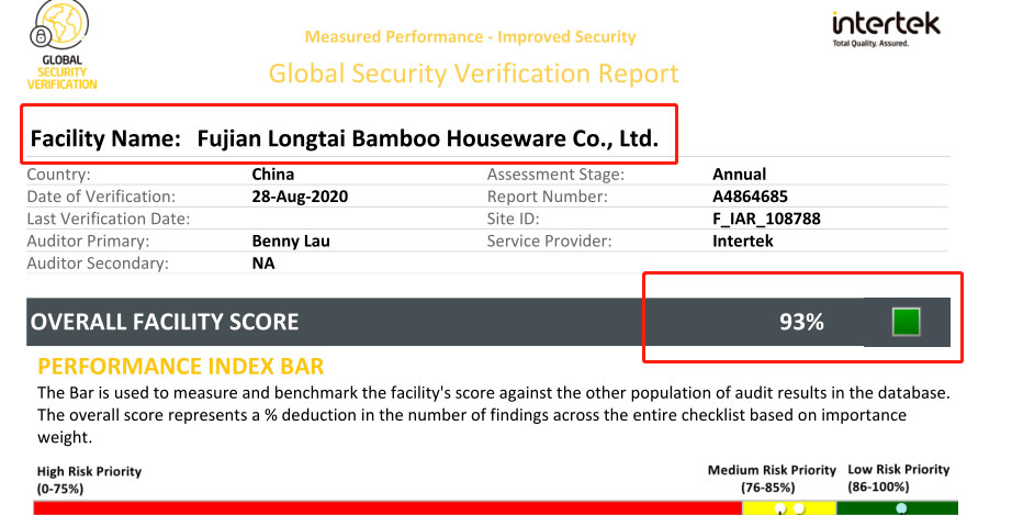 祝福建龍泰竹家居股份有限公司通過ITS審核GSV認證并取得93分