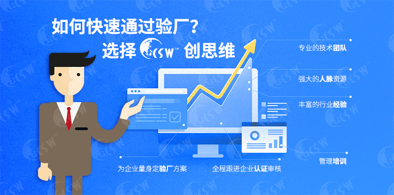 創(chuàng)思維專業(yè)從事客戶驗廠、認證、咨詢輔導,價格公道,服務優(yōu)良,“咨詢+輔導+考勤”一站式服務保姆式輔導,全方位實時跟蹤,多年來成功幫助上萬家企業(yè)順利通過驗廠,在行業(yè)中有口皆碑!