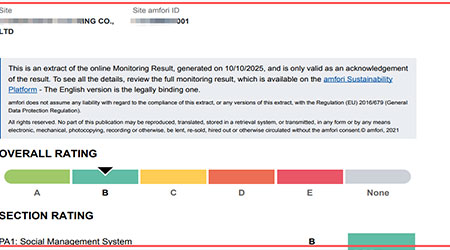 在創(chuàng)思維驗(yàn)廠網(wǎng)老師專業(yè)技術(shù)、全程跟進(jìn)耐心細(xì)致輔導(dǎo)以及公司全體員工配合下,一次性順利通過(guò)BSCI-B級(jí),為將來(lái)公司發(fā)展奠定了良好的發(fā)展基礎(chǔ),既開(kāi)拓了市場(chǎng)同時(shí)也增加了消費(fèi)者對(duì)公司的信賴,在這里再次祝賀柬埔寨LISHUN BOYE CLOTHING CO.,LTD 2025年成功通過(guò)BSCI-B級(jí),同時(shí)也期待未來(lái)再次與創(chuàng)思維驗(yàn)廠網(wǎng)合作!
